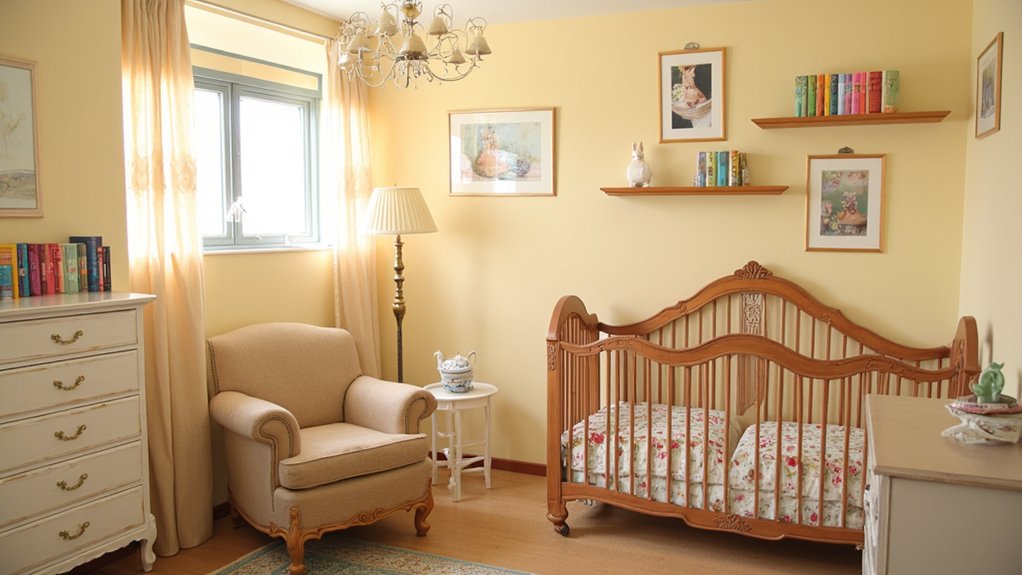 Imagination can transform a nursery into a magical escape with a Vintage Storybook Theme. You’re crafting a timeless space inspired by classic tales, using soft pastels and antique touches. Start this project over a weekend, dedicating about 10 hours.
