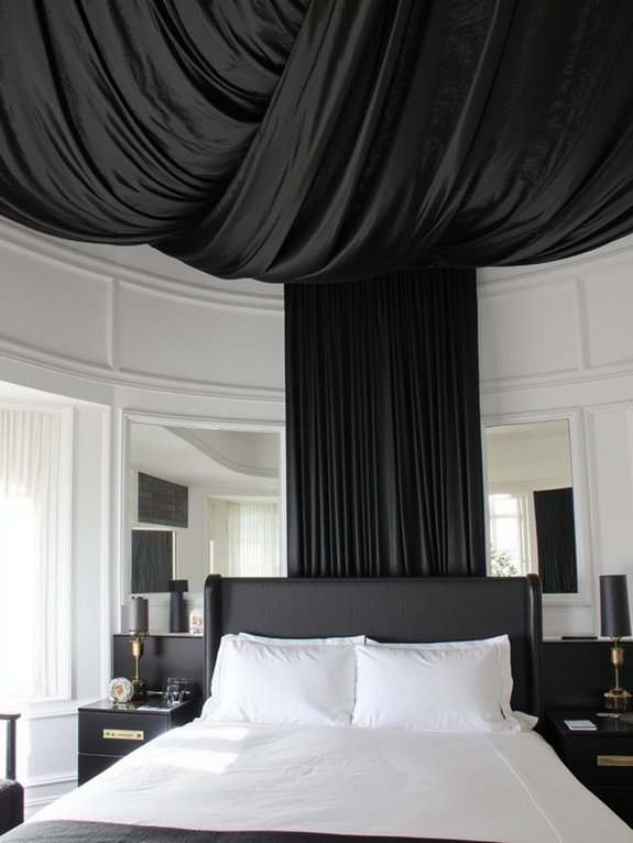 Black silk ceiling panels offer a dramatic architectural element for bedrooms, combining luxurious texture with sophisticated aesthetics. These panels transform ordinary ceilings into striking focal points while adding depth to monochromatic design schemes.
