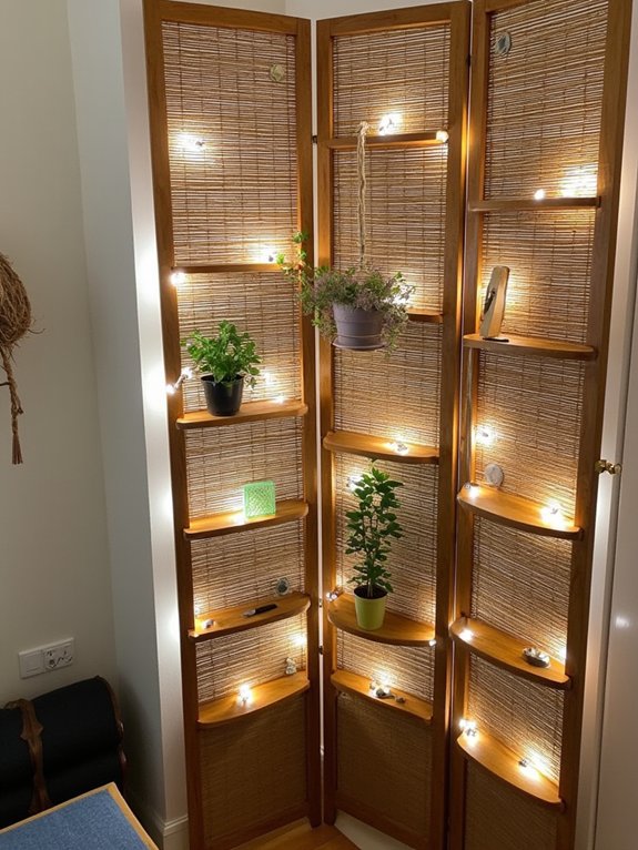 The ideal room divider features built-in shelving, uses lightweight materials like bamboo or fabric, and stands 5-6 feet tall. This height ensures privacy while allowing natural light to flow throughout the space, making it perfect for creating defined zones in multi-functional rooms while maximizing storage efficiency.
