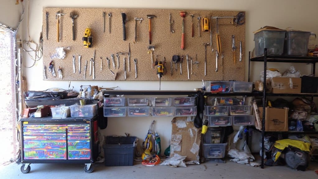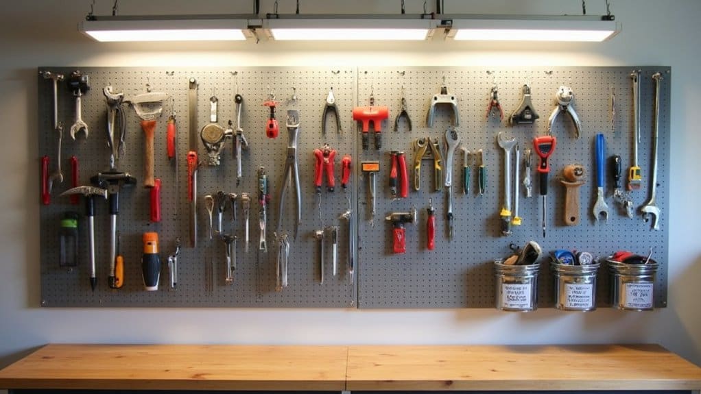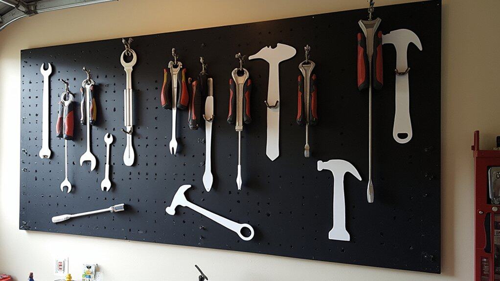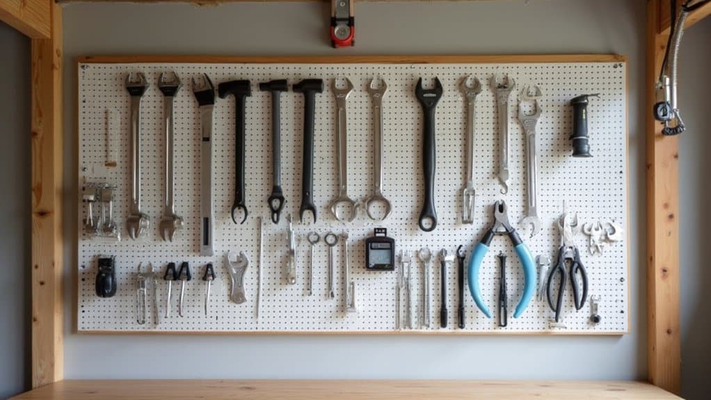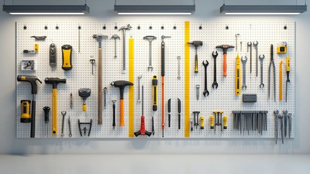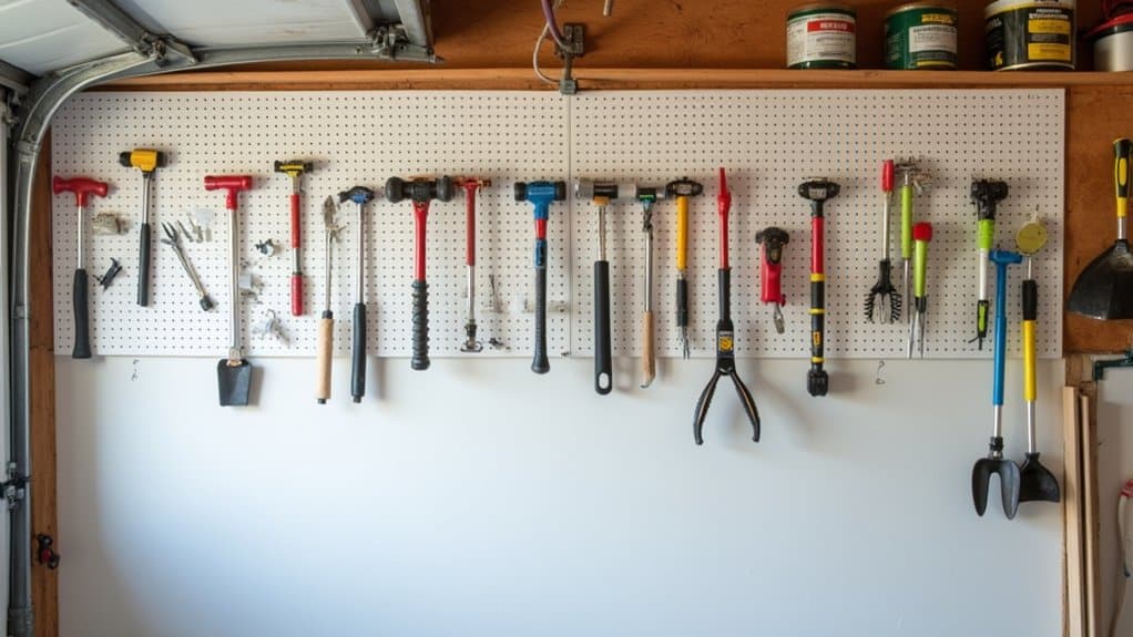 Hey, let’s chat about keeping your garage tools neat and easy to find! I’ve struggled with a messy workspace before, trust me—nothing’s worse than hunting for a hammer mid-project. Start with a pegboard; grab a 4×8-foot one and mount it on your wall for instant organization. It’s a game-changer! But wait, there’s more to making your space work smarter—stick around for the next tip.