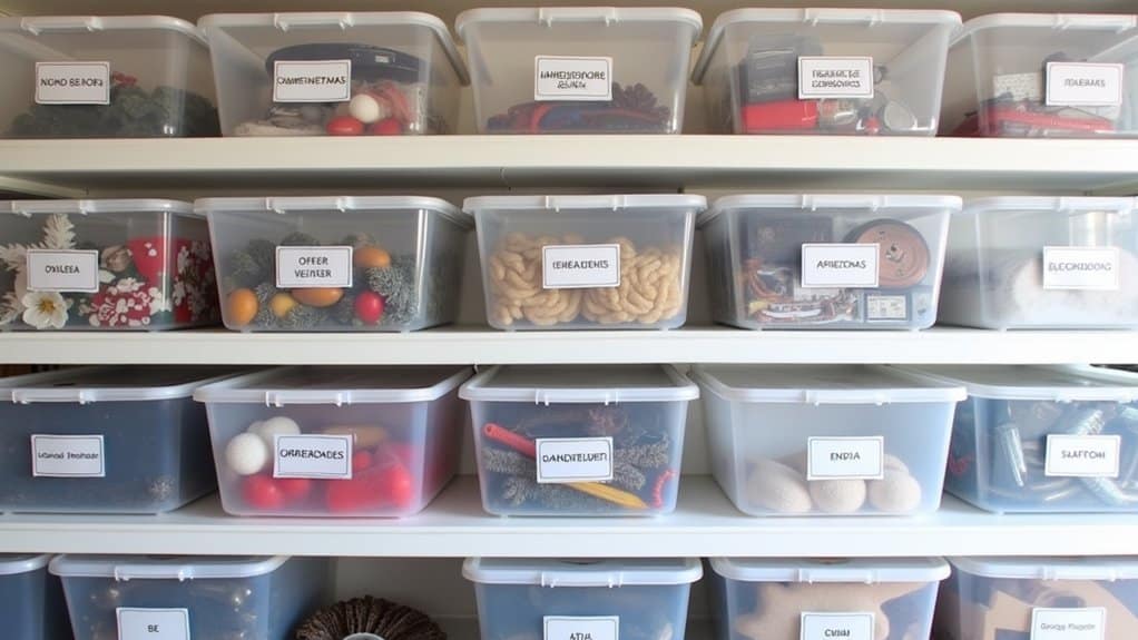 When using transparent bins, label each one clearly with its contents, even though you can see inside, to avoid confusion with similar-looking items. Group related items together, such as hardware in one bin and seasonal decorations in another, to create a logical system. Store frequently used bins at eye level for easy access, while less-used items can be placed higher or lower on shelves.