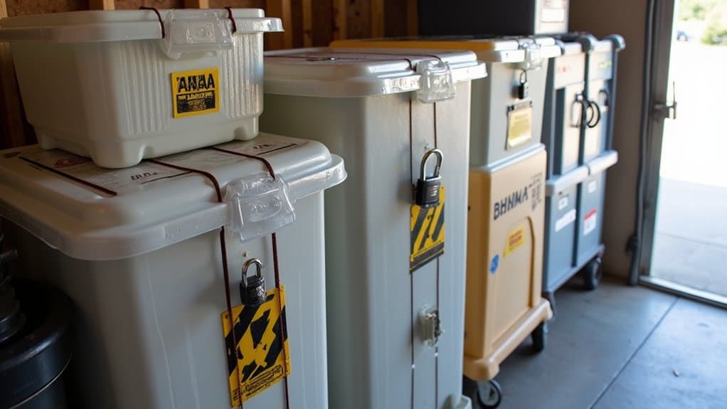 Regularly check the condition of bin lids to make certain they remain secure over time, especially if bins are exposed to temperature changes or frequent use. Tight lids also prevent accidental spills or messes, keeping your garage tidy and reducing the risk of tripping hazards. For added security, especially with hazardous materials, consider using bins with locking mechanisms or adding padlocks to keep contents safe from children or unauthorized access.
