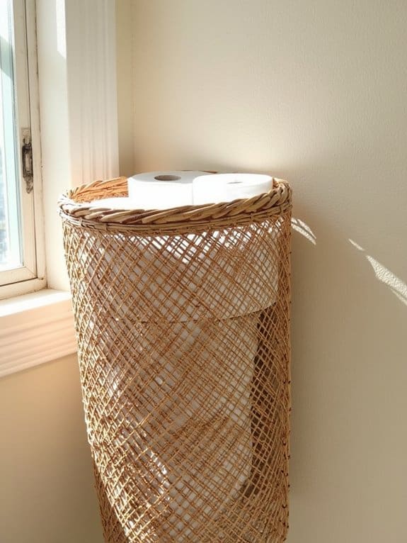 Vintage-style woven magazine baskets offer a charming and practical storage solution for bathroom essentials like toilet paper rolls. These versatile containers combine decorative appeal with functionality, adding woven textures and vintage character while keeping items easily accessible and protected from moisture.