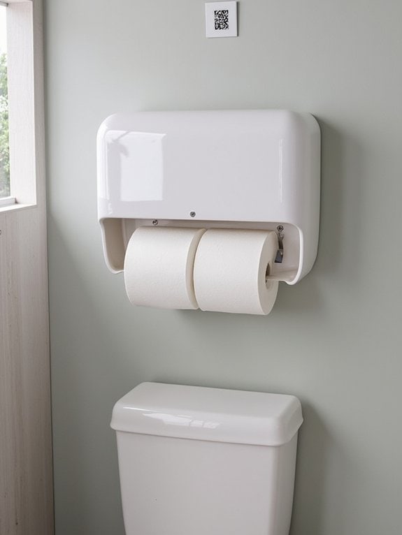 Installation requires mounting the unit 26 inches above the toilet using sturdy wall anchors. The hinged lid design allows easy access to 3-4 standard rolls, while the choice of understated colors like white, beige, or gray ensures the box integrates seamlessly with existing bathroom fixtures and decor.
