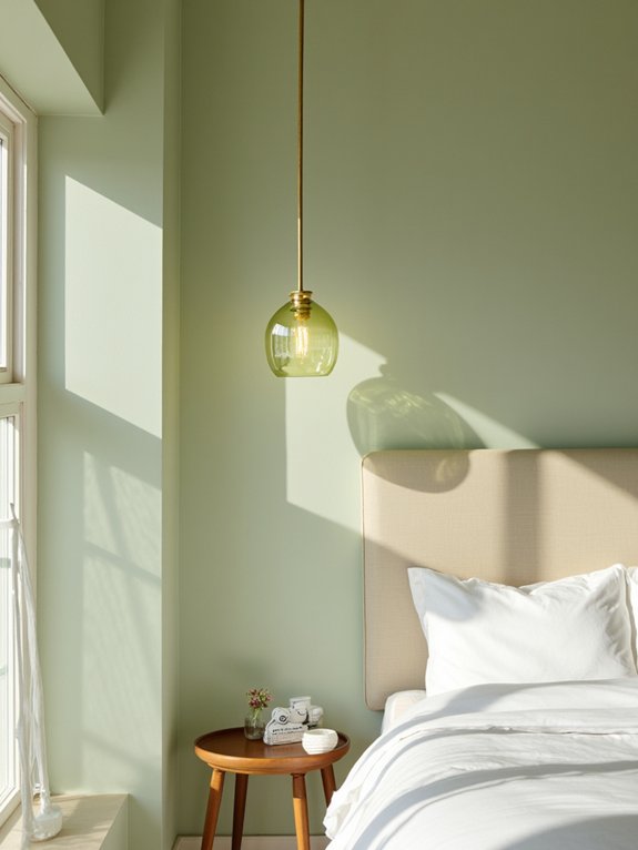 Sage-tinted glass light fixtures offer a sophisticated lighting solution for bedrooms, combining functionality with aesthetic appeal. The translucent green hue diffuses light evenly while creating a calming, nature-inspired atmosphere that transforms ordinary spaces into peaceful retreats.