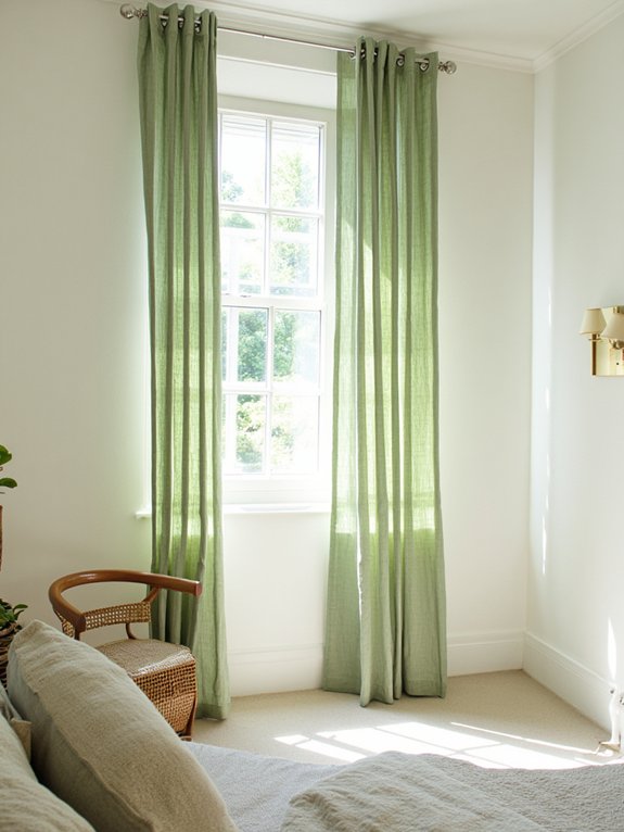 Sage green curtain panels come in various fabric weights and opacities, offering homeowners multiple options for controlling natural light in their bedrooms. From sheer to blackout materials, these panels can be selected based on specific lighting needs and desired ambiance.