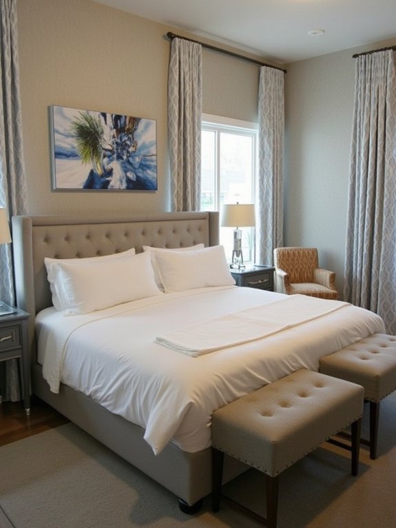 Creating symmetry requires precise measurements and careful attention to detail. Nightstands should be positioned equidistant from the bed, wall sconces installed at matching heights, and artwork centered perfectly above the headboard. This balanced approach ensures a serene environment while maintaining clean lines and proper proportions throughout the room.