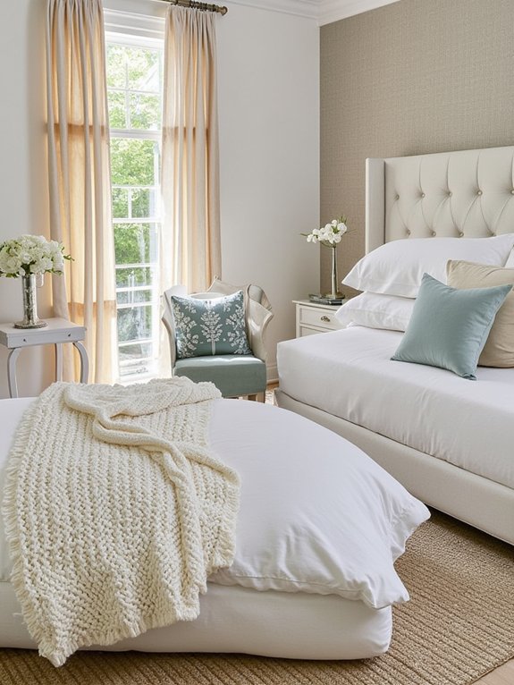 The key to successful texture layering lies in deliberate contrast and coordination. Mixing chunky knits with sleek cotton creates dramatic visual interest, while incorporating natural materials like wool and raw silk adds organic warmth. Multiple throw blankets in complementary colors but different weaves complete the layered, dimensional effect.