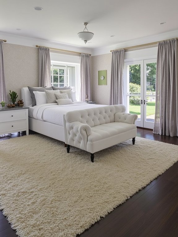 The right plush rug transforms a bedroom by defining furniture groupings, adding warmth to hard flooring surfaces, and reducing ambient noise. Durable materials like wool or premium synthetic fibers maintain their luxurious feel while standing up to daily wear, making them ideal choices for this essential bedroom element.