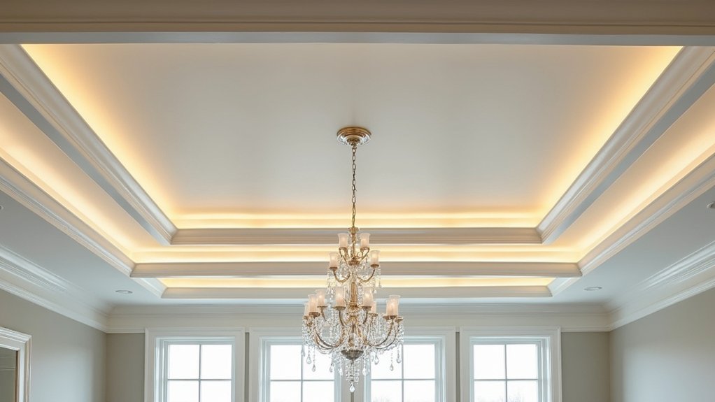 As interior designer Sarah Chen explains, “Tray ceilings add up to 12 inches of visual height while creating opportunities for dramatic lighting and artistic expression.”