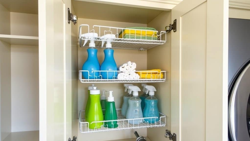 Ever feel like your laundry room is a chaotic mess, straight out of a sitcom disaster scene? Hey, I’ve been there, struggling to find detergent under a pile of randomness! Let’s tackle that under-sink area together. You can transform it with some clever storage hacks—think baskets and hooks. I once turned my jumbled mess into organized bliss in an hour. Curious how? Stick around for the game-changing tips!