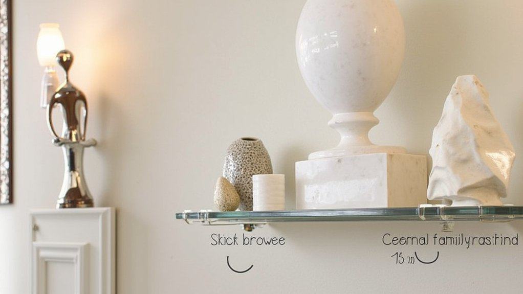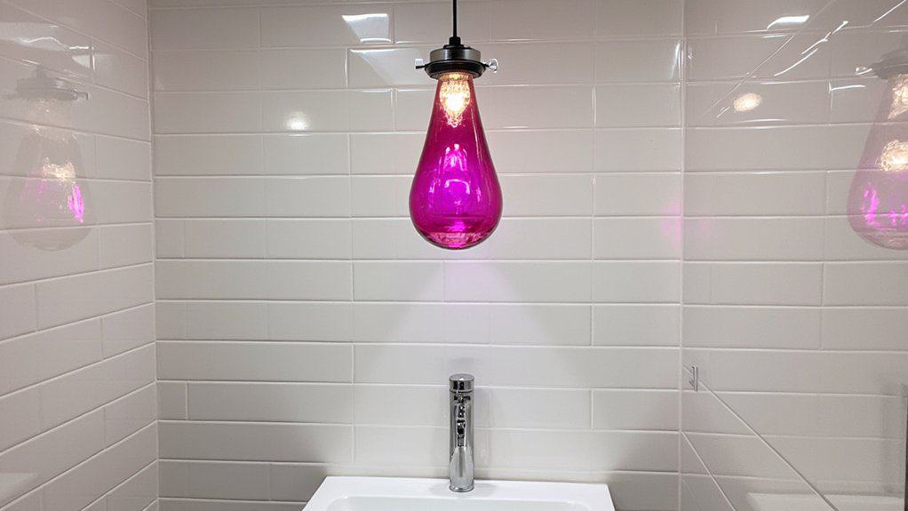 While sculptures bring personality to your powder room, don’t overlook the impact of colorful statement lighting to elevate the space. You can transform a small 5×7-foot area with a bold fixture. Install it within 30 minutes using basic tools, ensuring it’s centered above the mirror at 75-80 inches high.