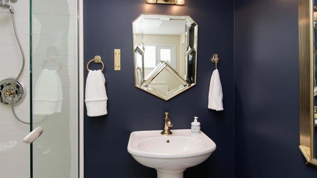 How can you make your powder room truly unforgettable with just one element? Focus on a unique mirror design that grabs attention. You’ve gotta pick a mirror that’s bold and fits your space—think outside the square!