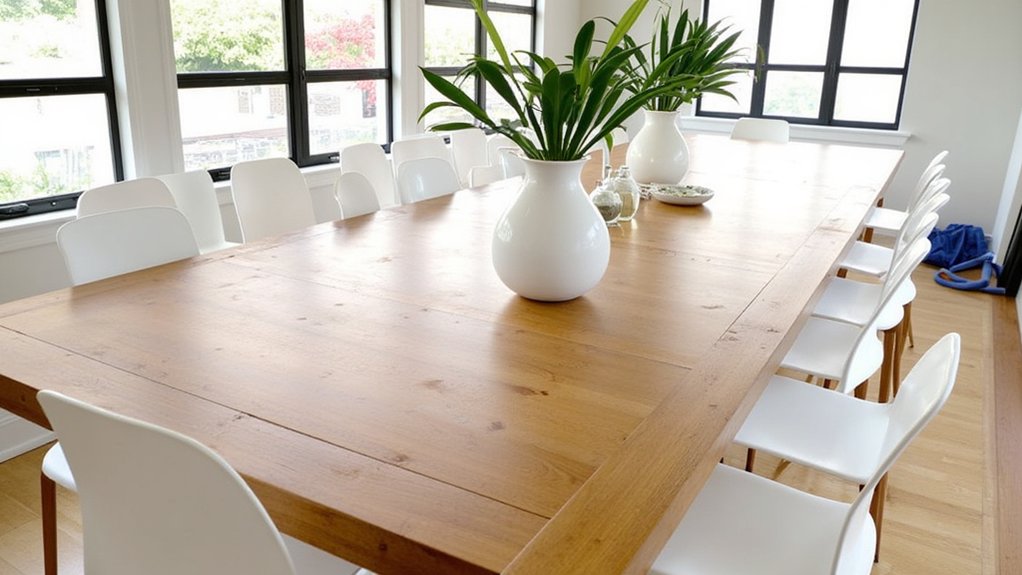 Discover the eco-friendly charm of a sustainable bamboo table to refresh your dining area with natural beauty. You’ll love how this durable material, often 3 inches thick, transforms your space with earthy tones. A standard 60-inch by 36-inch table seats six comfortably.
