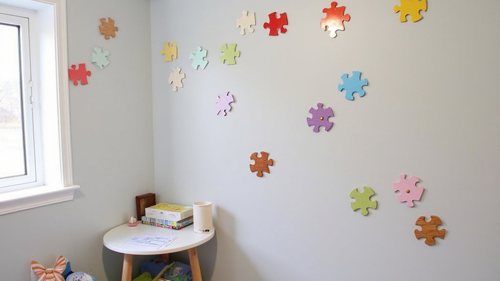 Dive right into a fun and interactive project with a magnetic puzzle wall for your kid’s bedroom. You can transform a dull space into an engaging play area with a few simple steps. Start by picking a 4×3 foot wall section for easy reach.