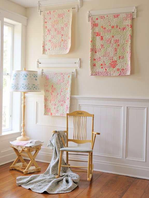 The key to successful quilt display is proper installation using archival-safe mounting methods, which preserves these precious heirlooms for future generations. Rotating seasonal quilts not only creates visual interest but also protects delicate textiles from extended light exposure while adding warmth and character to nursery walls.