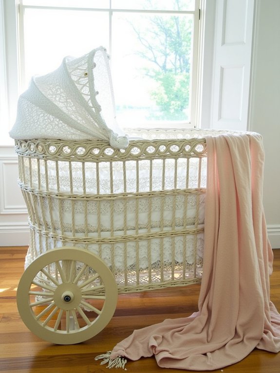 Wicker bassinets offer a classic sleeping solution for newborns up to 4 months old, combining vintage elegance with practical functionality. These handcrafted pieces feature traditional wicker construction and often include delicate vintage-style bedding with eyelet trim and embroidered details.