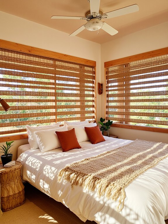 Woven bamboo window coverings offer a natural aesthetic solution for bedroom spaces, combining adjustable light control and privacy with organic visual appeal. Their versatile design complements various interior styles while effectively filtering daylight.