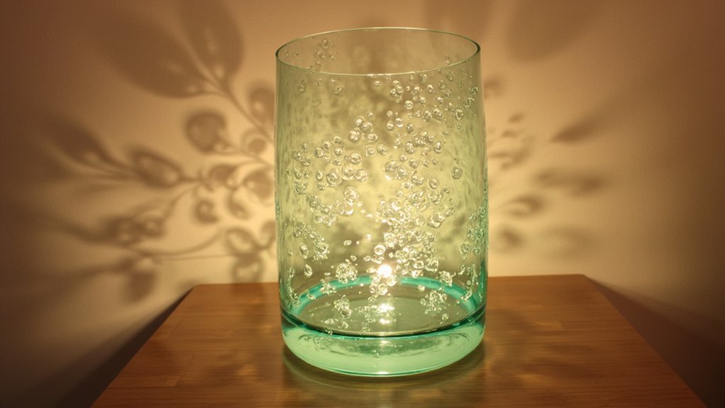 Let’s explore another organic element for your nursery with recycled glass lamps to add a sustainable glow. These eco-friendly pieces bring a warm, gentle light while reducing waste. You’ll love how they fit into a natural design with unique, handcrafted charm.
