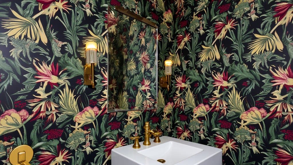 Inspiration can strike anywhere, and a powder room’s a perfect spot to make a daring statement with bold mural wallpaper. You’re transforming a small space—often 5×5 feet—into a visual masterpiece with just a weekend’s work. Pick a vibrant design and measure your walls precisely to order enough rolls.