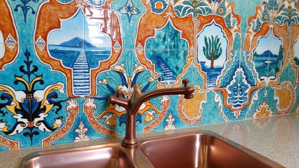 Creativity sparks when you introduce hand-painted ceramic tiles into your powder room decor for a custom touch. You’re transforming a small space with vibrant, one-of-a-kind designs. Choose tiles, about 4×4 inches, to create a backsplash or accent border behind your sink, installing them over a weekend.