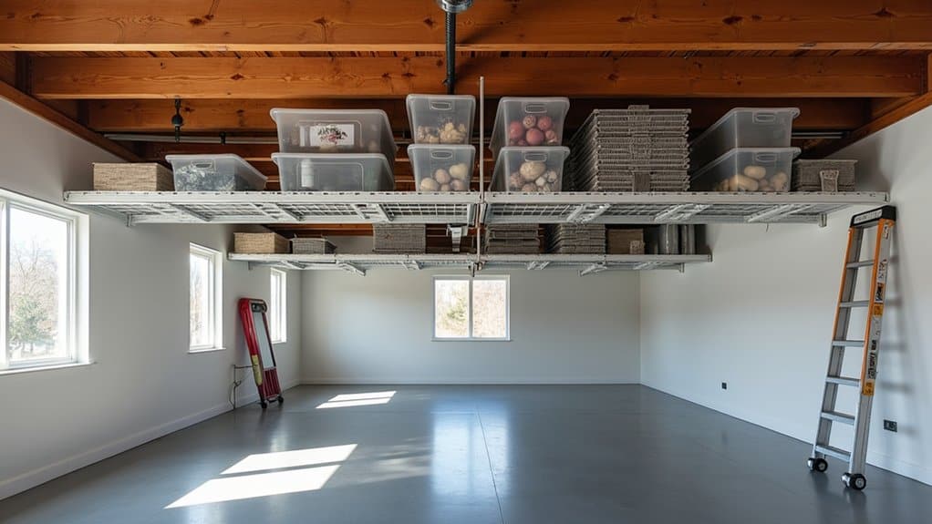 Choose units that suit your storage needs, such as heavy-duty racks for seasonal items or bins for smaller tools, and secure them properly to avoid accidents. Always check weight limits to prevent overloading, and organize items strategically by placing frequently used items in easily accessible spots. Test the setup after installation to confirm stability before storing heavier objects.