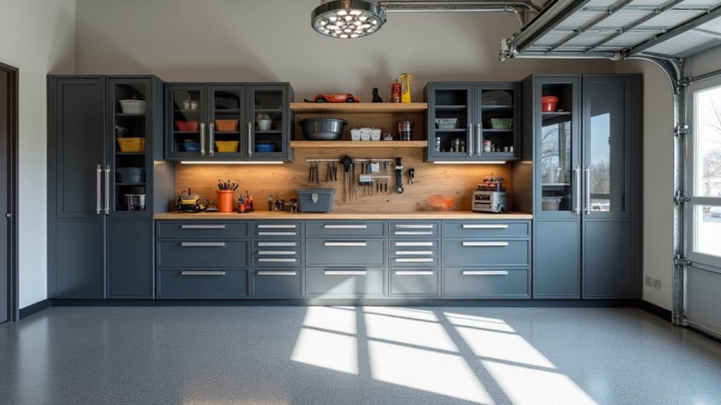 Vertical storage racks are an excellent solution for maximizing space in a three-car garage, especially when floor space is limited. These racks utilize the often-underused wall space, allowing you to store items like sports equipment, tools, and seasonal gear off the ground. Installing sturdy, adjustable racks guarantees you can customize the storage to fit various item sizes and keep everything accessible.
