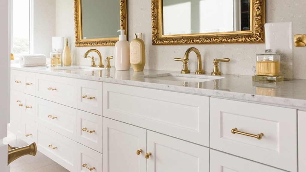 As you enhance your guest bathroom’s style, adding luxurious gold accents can elevate the space with a touch of sophistication. You don’t need to spend much to get that upscale vibe. With small, intentional changes, you’ll transform the room in just a weekend.
