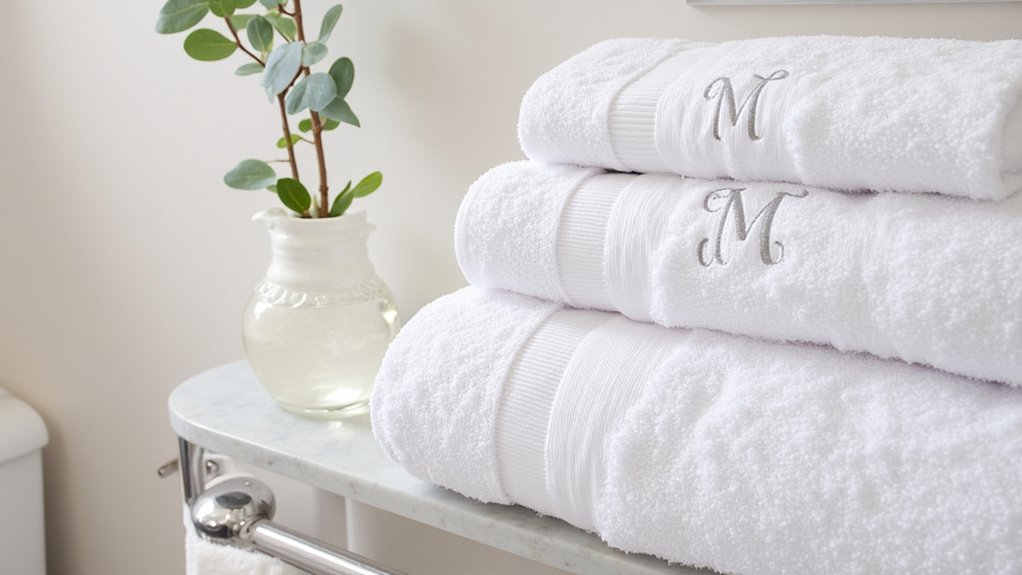 Bring a personal touch to your guest bathroom by swapping out plain towels for plush monogrammed ones that impress. These towels instantly elevate the space, making it feel luxurious without breaking your budget.