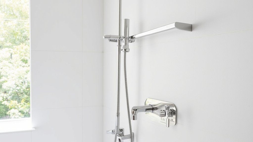 Consider swapping out old fixtures for sleek chrome options to give your guest bathroom a modern edge. Chrome’s shiny finish instantly elevates the space, making it look high-end without breaking the bank. You can transform the vibe in just a weekend with these easy updates.