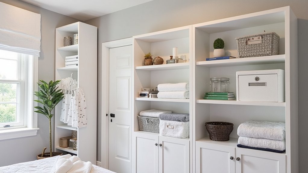 As you tackle the challenge of a small guest bedroom, incorporating vertical storage solutions can maximize space effectively. Don’t let limited floor space hold you back; look up for clever ideas!