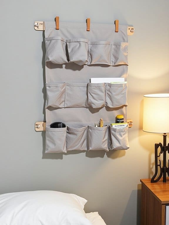 A bedside hanging organizer offers an efficient storage solution that doesn’t consume valuable floor space. These practical accessories attach directly to your mattress or bed frame, providing easy access to everyday items while keeping your sleeping area tidy and organized.