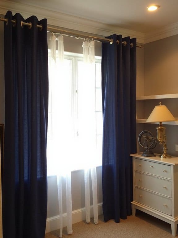 Double curtain rods offer a versatile storage solution for small bedrooms while maintaining a polished appearance. By mounting two rods parallel to each other, you can maximize vertical space and create additional storage options above your windows.