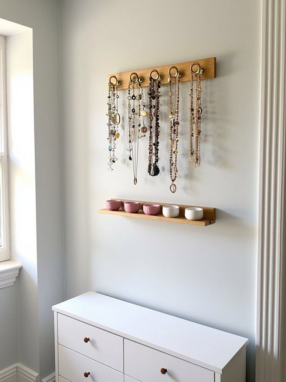 A wall-mounted jewelry display offers a practical and stylish solution for organizing accessories while maximizing vertical space. By transforming bare walls into organized storage, this display method keeps jewelry visible, untangled, and readily accessible.