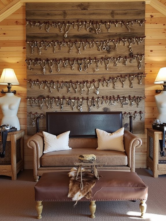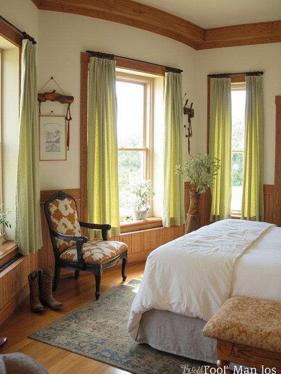 Weathered ranch rope tiebacks add authentic western charm to window treatments while serving a functional purpose in rustic room designs. These natural fiber ropes create visual interest and texture when used to hold back curtains, perfectly complementing ranch-style décor.