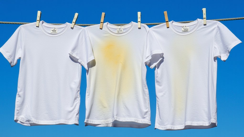 Did you know that 90% of yellow sweat stains aren’t actually caused by sweat alone? You’ll find that your antiperspirant, not your perspiration, is the real culprit behind those stubborn yellow marks on your favorite white shirts. The aluminum compounds in your daily antiperspirant react with the proteins in your sweat, creating that tell-tale discoloration that’s ruined countless garments. Understanding this chemical reaction is your first step toward preventing those pesky stains.