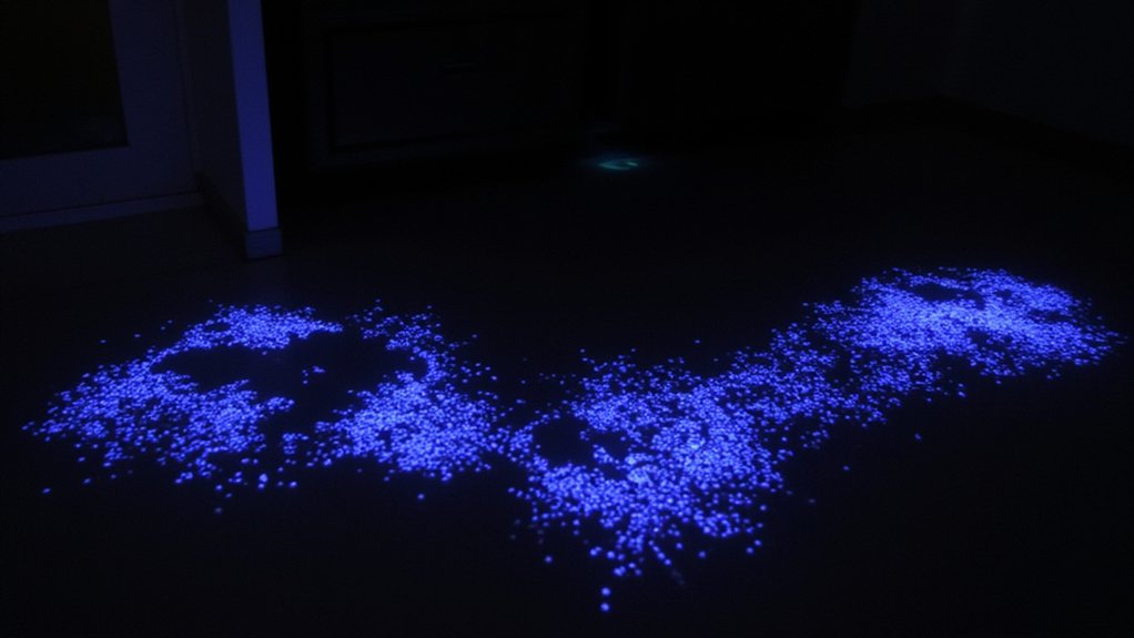 You’ll find dried mouse urine remains detectable under UV light for several months due to its unique composition of uric acid and proteins that maintain fluorescent properties even after drying completely.