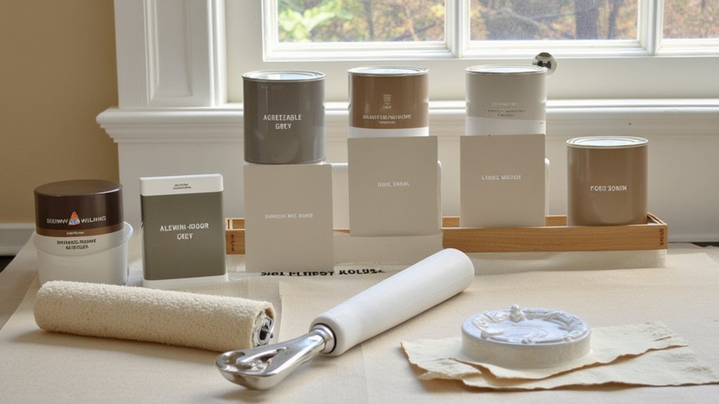 You’ll find that builders often save 20-30% on paint costs through bulk purchasing of standard colors. When you’re working with neutral shades like Agreeable Gray or Swiss Coffee, you’ll benefit from: