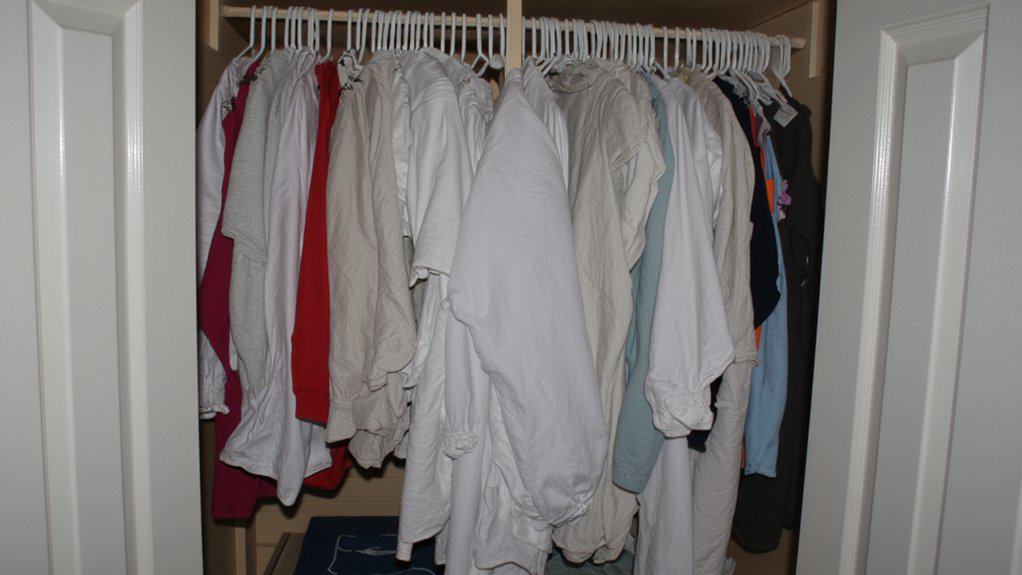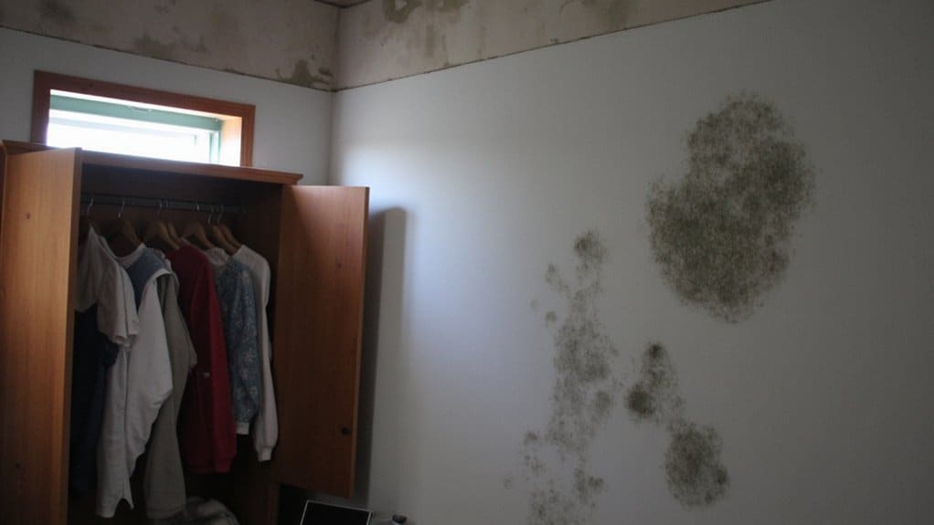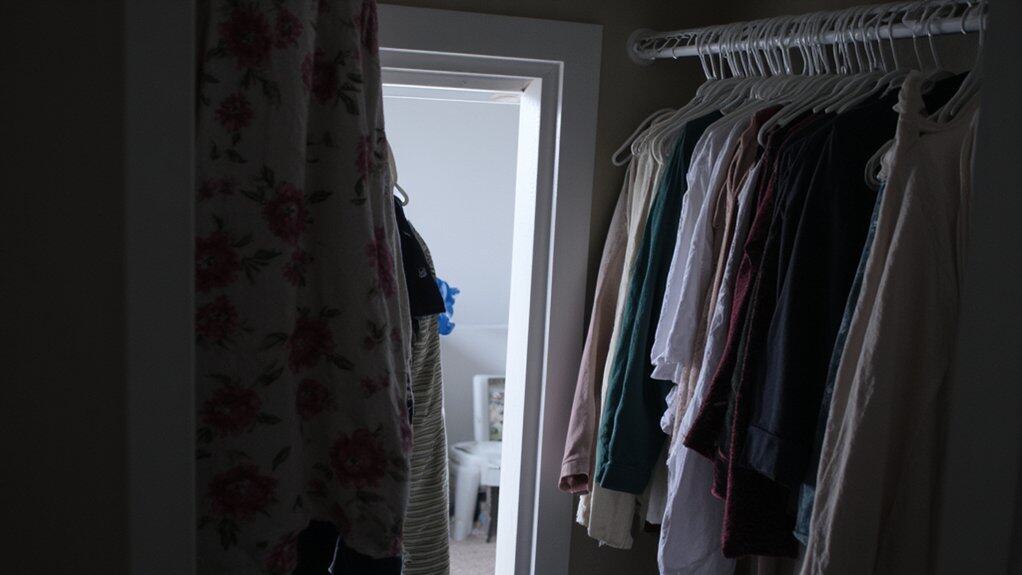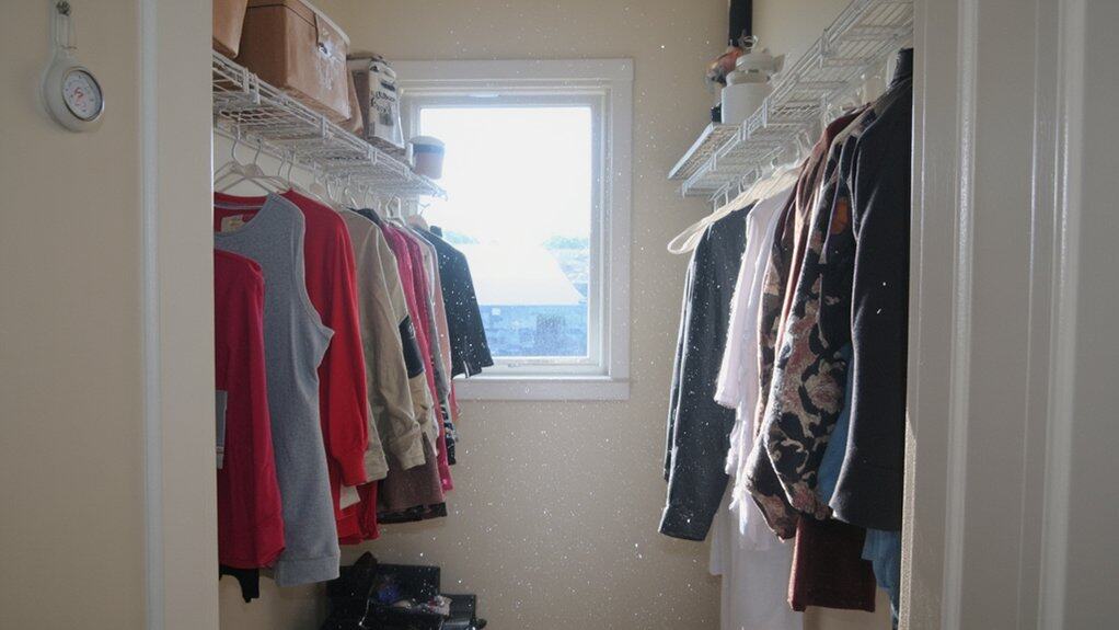Beyond storage materials, another factor affecting your closet’s smell is the risk of mildew and mold in tight spaces. Damp, enclosed areas with poor airflow create perfect conditions for growth, especially if humidity exceeds 60%. Clothes can absorb musty odors within 48 hours.