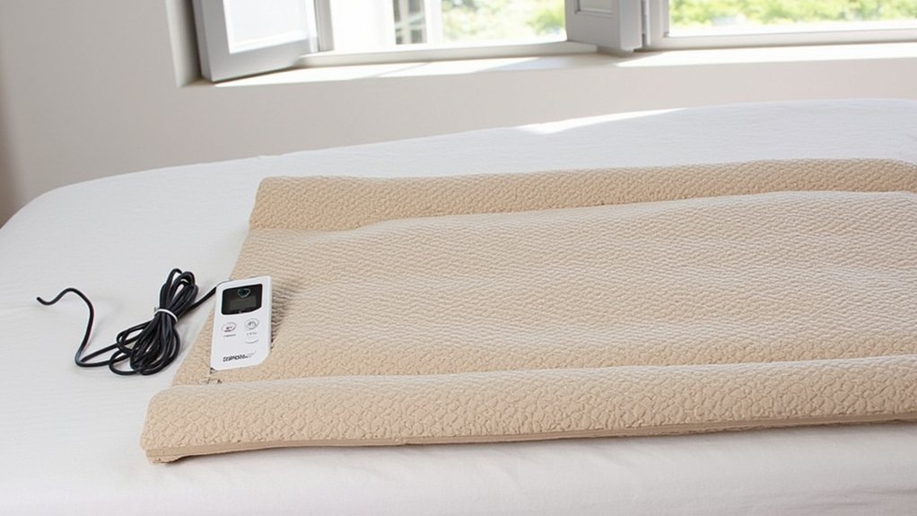 Your heating pad’s temperature control typically offers low, medium, and high heat settings. You’ll find low is gentle warmth, medium provides moderate heat, and high delivers maximum therapeutic intensity.