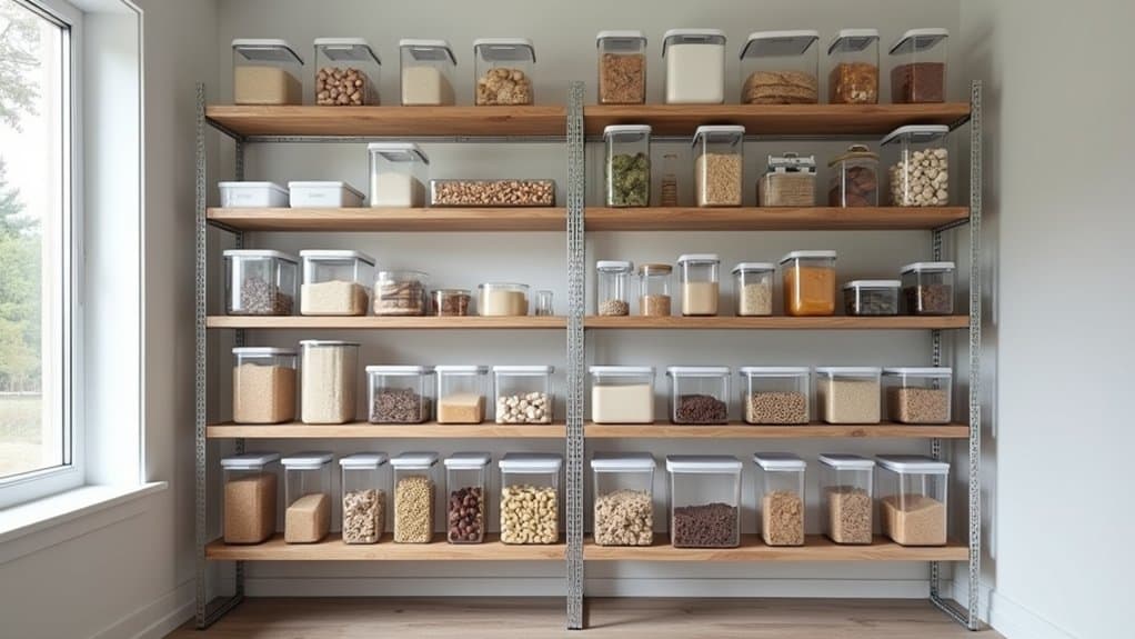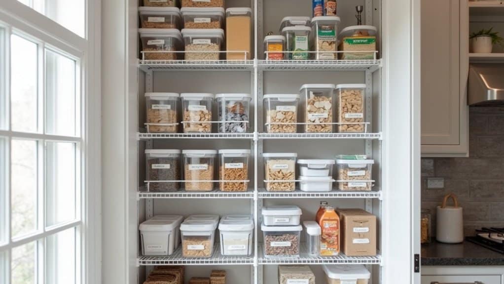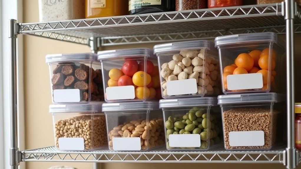 Begin by taking a close look at your pantry space to understand its layout and capacity. Measure the dimensions of shelves, noting height, width, and depth to determine what storage solutions will fit. Identify any underutilized areas, such as corners or high shelves, that could be maximized with the right tools or containers. Consider the types of items you store most frequently and prioritize accessibility for those goods. This assessment helps guarantee that every inch of space is used efficiently and tailored to your household’s specific needs.
