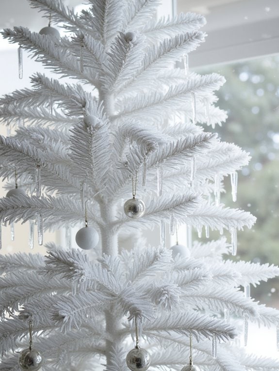 The tree becomes a stunning focal point when adorned with clear LED lights and topped with a silver star. Its versatile appearance complements various decorating styles, from minimalist modern to classic holiday themes, while providing a fresh alternative to conventional green Christmas trees.