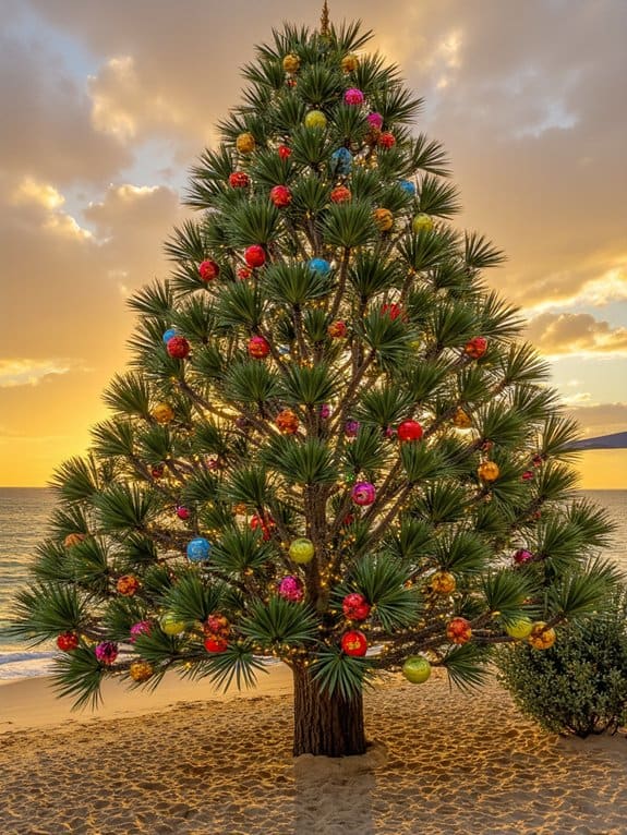 Transform your Christmas celebration with an unconventional 6-foot artificial palm tree instead of the traditional pine. This tropical twist creates a beach-inspired holiday atmosphere, combining classic decorating elements with coastal charm.